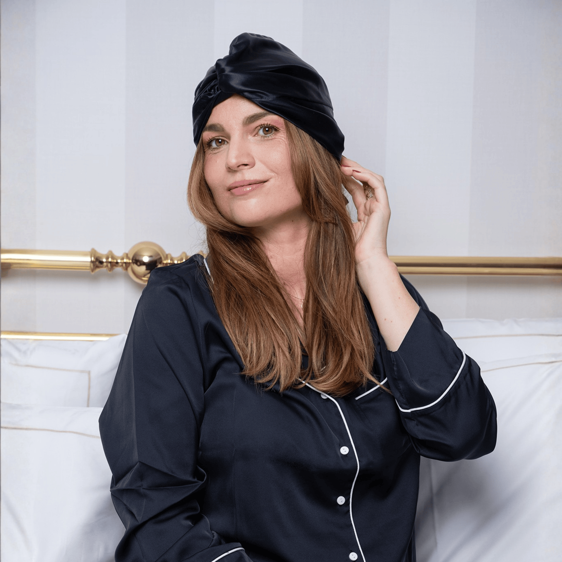 Hergestellt aus Naturseide, sanft zur Kopfhaut und atmungsaktiv für optimalen Tragekomfort.