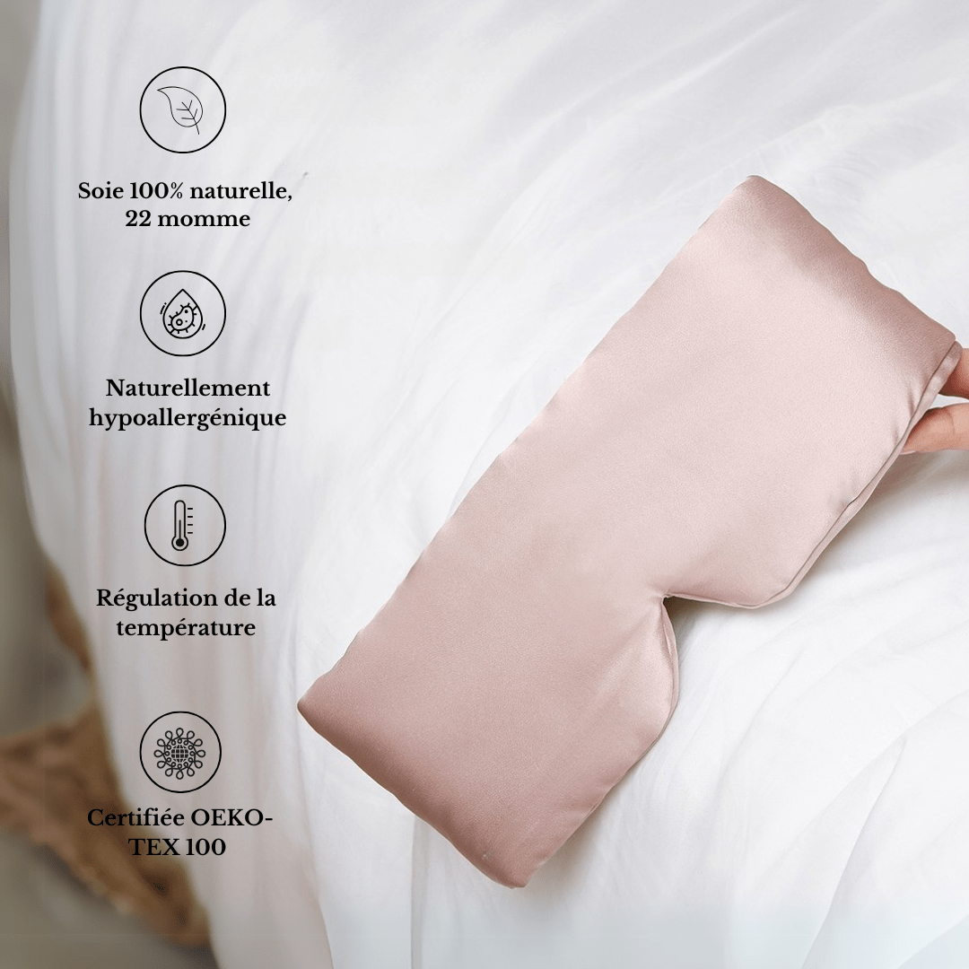 💡 La soie étant naturellement antibactérienne et hypoallergénique, un lavage toutes les 2 semaines est suffisant. Pour un usage quotidien, pensez à alterner avec un second masque.