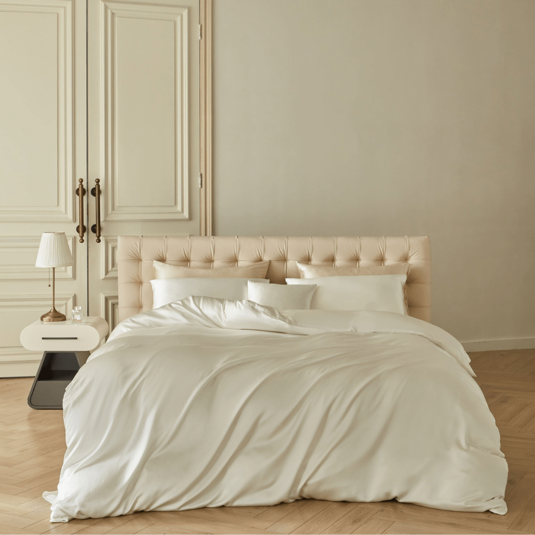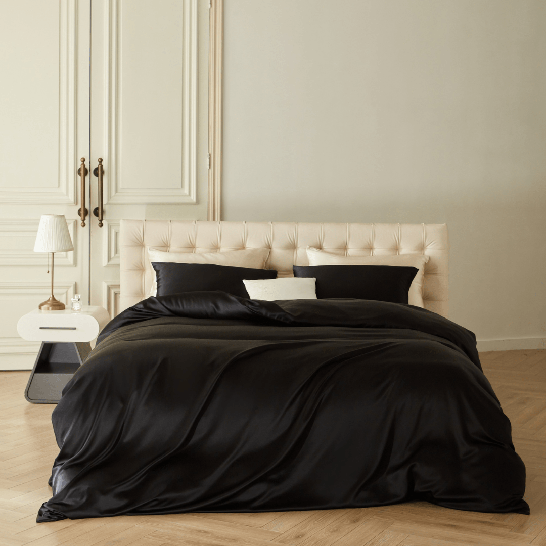 Parure de lit en soie - Housse de couette, drap-housse et taies